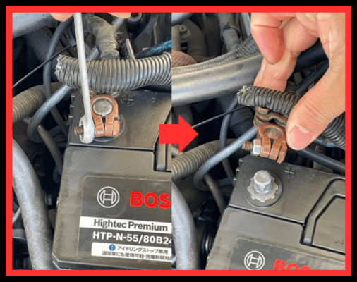 プラス端子同様に外した時と逆の手順で取り付けます。