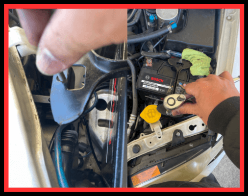 留め具を外す場合は、メガネレンチよりもラチェットハンドルを使ったほうのが他に触れにくいからショート防止におすすめ。